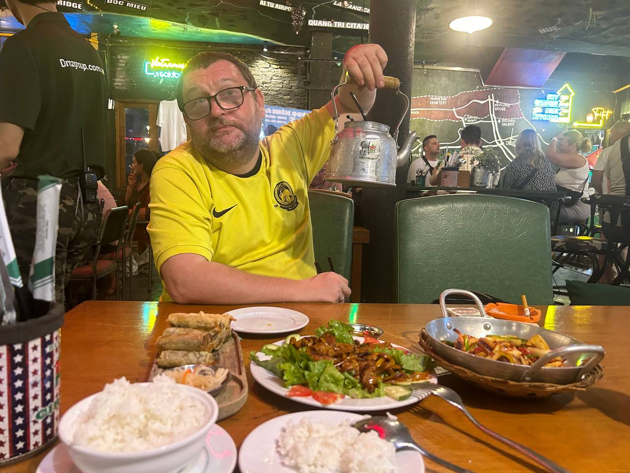 Partying and eating at The DMZ Bar Hue